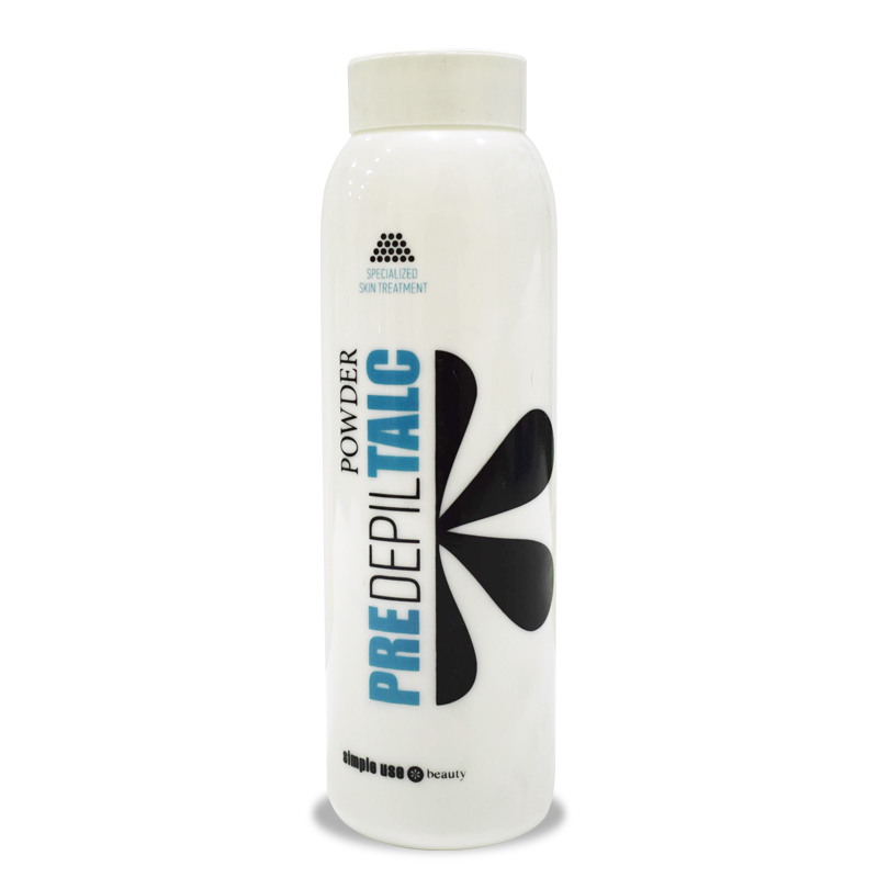 Simple Use Beauty’s PRE DEPILATION TALC POWDER is a product FREE of Parabens, ideal to prepare the skin for waxing by removing greasiness from it. In this way, you can have better adhesion of the wax on the hair. Also, it offers a slight cooling effect for more enjoyable waxing.